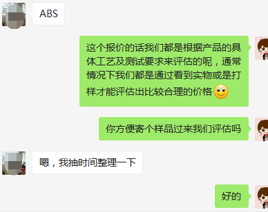 对于喷涂加工行业来说,不像快销品,可以通过几句话就能了解到:对方可能就是想要比价,而且对于工艺技术方面的问题都了解的不多。想找几家喷涂厂家报价,看哪家价格便宜然后再合作。对于喷涂厂家来说,客户的要求就是需要知道产品的底价,而如果你不给客户报价,客户就会觉得你没有实力;而如果你在没有完全了解客户的产品细节的情况下报价了,客户也不一定会和你签约。这是因为,客户还会找报更低报价的厂家。对于客服来说,这是一个两难的选择。